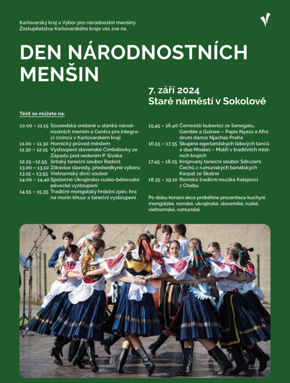Hlavním posláním vrcholné akce Výboru pro národnostní menšiny Zastupitelstva Karlovarského kraje je vyvracet předsudky a bořit bariéry mezi jednotlivými národy a národnostmi, které žijí na území karlovarského regionu. „Společně s kolegy pomáháme s integrací odlišných mentalit a kultur, abychom jim život u nás co nejvíce usnadnili. S tím se pojí také budování respektu a tolerance u místních, aby naše společně soužití bylo bezproblémové. V tom nám pomáhá tradiční den věnovaný právě odlišným kulturám. Přijďte se seznámit s našimi sousedy z řad příslušníků národnostních menšin a užít si pestrý den, ze kterého si odnesete spoustu zajímavých poznatků a inspirativních setkání. Těšíme se na vás,“ uvedla předsedkyně výboru a uvolněná zastupitelka pro oblast lázeňství, cestovního ruchu a kreativních průmyslů Markéta Monsportová. Zahájení programu proběhne v 10 hodin, kdy bude pro všechny návštěvníky připravena sousedská snídaně. Posilněni se pak mohou připojit do hornického průvodu městem a po zbytek dne obdivovat talent a umění slovenské, srbské, vietnamské, mongolské, rumunské nebo romské menšiny. Do výčtu nejpočetněji zastoupených menšin na území karlovarského regionu patří i Ukrajinci, Rusové a Bělorusové, které návštěvníci uvidí ve společném pěveckém vystoupení.