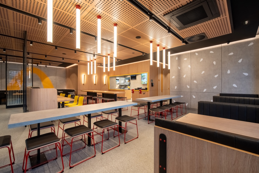 Interiér nové pobočky je proveden v designu Ray, který odkazuje přímo k zakladateli McDonald's Rayi Krocovi. Návštěvníky zaujmou výrazné žluté a červené prvky ve spojení s čistým betonem a světlým dřevem, jež vytváří atmosféru spojující tradici s moderním pojetím. Hosté mají k dispozici 93 míst k sezení uvnitř a v sezoně až dalších 60 míst na venkovní zahrádce. Pro maximální pohodlí zákazníků a rychlé i snadné objednání je restaurace vybavena čtyřmi oboustrannými samoobslužnými kiosky, využít ale samozřejmě lze i přímo obsluhu restaurace. V nabídce nechybí ikonické produkty, ale ani oblíbené snídaňové menu pro ranní návštěvníky. Restaurace je otevřena každý den od 7 do 23 hodin, což nabídne dostatek prostoru jak pro ranní kávu, tak odpolední či večerní posezení s rodinou či přáteli. Slánský McDonald's se stává dalším místem, kde se spojuje pohodlí a moderní prostředí pro všechny generace návštěvníků tohoto královského města.