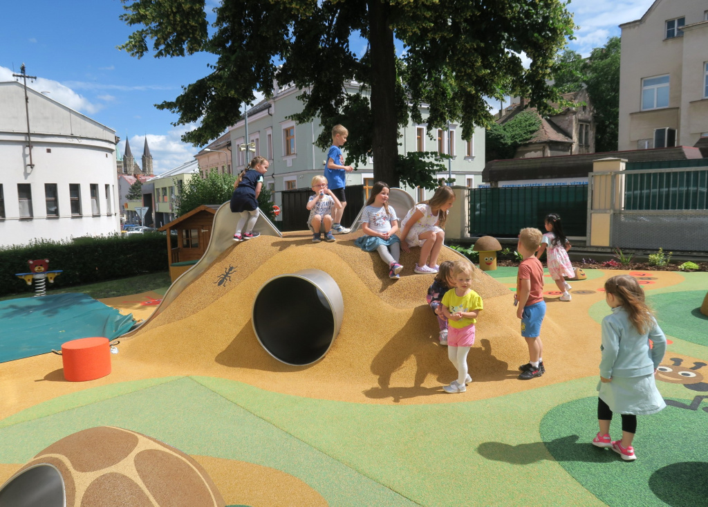 V Kolíně je celkem sedm mateřských škol, které navštěvuje kolem tisícovky dětí předškolního věku. Ta v Kmochově ulici s kapacitou 80 míst patří mezi ty menší. „Samozřejmě, že k nám mohou zavítat během svých procházek i děti z ostatních mateřinek. Bude jen záležet na domluvě, aby se zde nesešly všechny najednou,“ směje se Lenka Chybová. Jak na závěr dodala, multifunkční 3D herní plocha je z polyuretanového povrchu, takže ji jen tak něco nepoškodí. Kromě velkého a hlubokého pískoviště obsahuje mimo jiné i dlouhou housenku s písmeny, podle nichž se učí děti abecedu, a obrovský mravenčí kopec se dvěma, průlezovým tunelem, horolezeckou stěnou a vytvarovaným žebříkovitým výstupem.