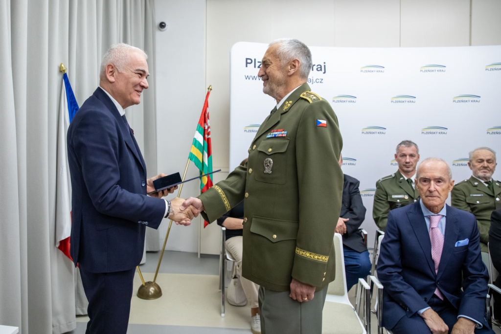 8. listopadu 2024, 06.00 | Plzeň - U příležitosti Dne válečných veteránů, který si připomeneme v pondělí 11. listopadu, předal hejtman Kamal Farhan ocenění válečným veteránům, kteří byli nasazeni ve vojenských operacích OSN a NATO na území Albánie, Bosny a Hercegoviny, Chorvatska, Iráku, Kosova, Kuvajtu, Saudské Arábie a Turecka. Tradiční slavnostní akt se konal již počtvrté, hostila ho Semlerova rezidence, unikátní prostor Plzeňského kraje – Západočeské galerie v Plzni.