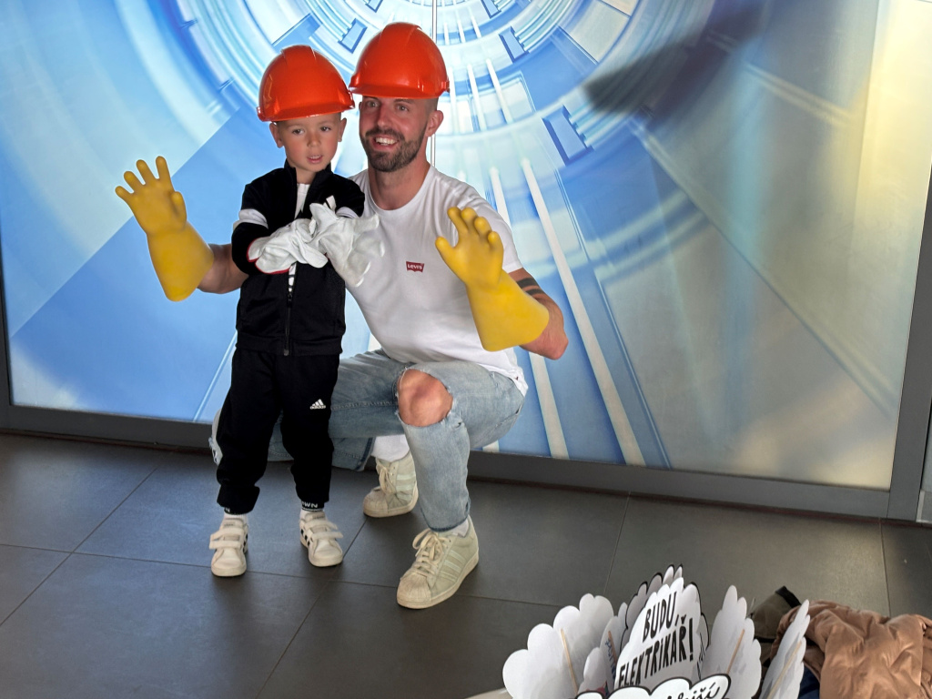 „Letošní oslavy Dne dětí jsme pojali jako možnost seznámení se zajímavými povoláními. Proto tu máme profesionální hasiče a zdravotníky, proto přijeli z nedaleké rozvodny Chotějovice kolegové z ČEZ Distribuce se svou technikou a potřebným pracovním vybavením, proto k nám zavítali i dva technologové provozu přímo z Elektrárny Ledvice, kteří dětem předváděli, jak funguje elektřina v domácnostech od zapojení až po rozsvícení žárovky. Vyžadovalo to samozřejmě i jejich aktivní spolupráci, čímž měly splněný jeden úkol. Druhým byl slalom mezi permoníky do staré štoly, z níž musely zachránit nějaké plyšové zvířátko. Aby to neměly tak jednoduché, cestu tam absolvovaly se polévkovou lžící naplněnou až po okraj vodou. Třetí stanoviště bylo u sanitky, kde jim zdravotníci ukázali kardiopulmonální resuscitaci a děti se pak samy snažily „oživit“ k tomu určenou figurínu,“ zestručnila průběh oslav Zdena Zolotarjov, průvodkyně Infocentra Elektrárny Ledvice. Snad pro všechny bylo velkým lákadlem, nechat si něco namalovat na obličej chomutovskou artistkou Barborou Volhejnovou a také samoobslužný fotokoutek s nejrůznějšími energetickými rekvizitami. „Samozřejmě bez společné fotky odjet nemůžeme. Jako tatínek jsem velmi spokojen s dnešním dopolednem a myslím, že čtyřletý Frederik také, že?“ obrátil se Petr Fara z Chomutova na synka. Toho zrovna zaujal jeden z interaktivních panelů, a tak jen souhlasně pokyvoval hlavou.
