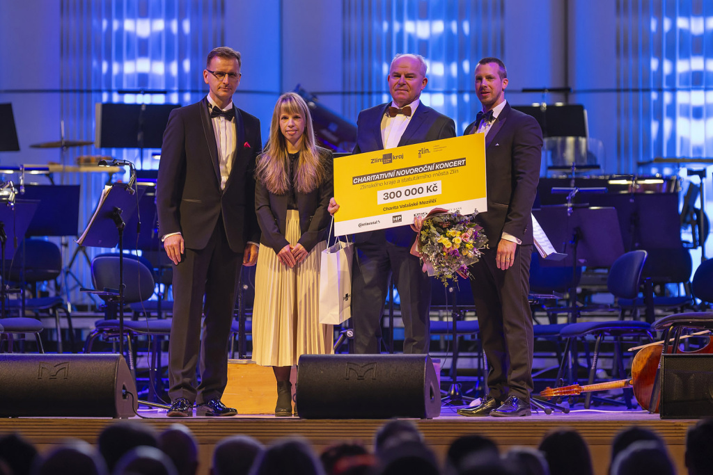 „Velmi si vážím všech, kteří se rozhodli podpořit letošní novoroční koncert. Rekordní výtěžek je krásným důkazem toho, že solidarita a ochota pomáhat mají v našem kraji pevné místo. Díky této společné podpoře mohou vybrané organizace pokračovat ve své důležité práci pro ty, kteří ji nejvíce potřebují,“ uvedl hejtman Zlínského kraje Radim Holiš.Dosud nejvyšší částku se podařilo vybrat v roce 2020, kdy činila 737 040 korun. Výtěžek z letošního koncertu pořadatelé rovnoměrně rozdělí mezi čtyři organizace ze Zlínského kraje poskytující sociální služby. Půjde o Handicap Zlín, z.s., PAHOP, Zdravotní ústav paliativní a hospicové péče, z.ú., Charitu Valašské Meziříčí a NADĚJI, pobočku Nedašov. Symbolické šeky zástupcům těchto organizací předali hejtman Radim Holiš, primátor Zlína Jiří Korec a hlavní partneři koncertu.