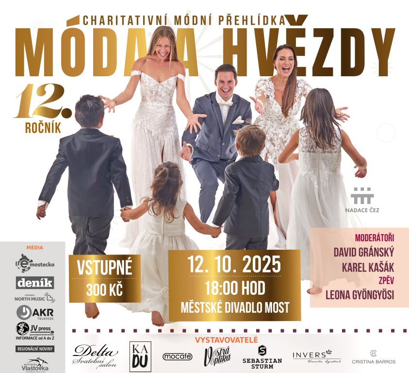 Podle pořadatelky, majitelky Svatebního salonu Delta Petry Vyoralové už takto děti v uplynulých ročnících získaly přes tři miliony korun na aktivity, které nehradí stát. Ani na pódiu nebudou chybět známé tváře – moderátoři David Gránský a Karel Kašák a zpěvačka Leona Gyöngyösi. Poděkování patří všem partnerům, kteří přispěli finančně či materiálně. Těch, kterým není osud znevýhodněných dětí lhostejný, je celá řada. A to je dobře. Regionální noviny se rády připojily k mediálním partnerům. Celkovou částku můžete navýšit i vy, pokud si zakoupíte vstupenku v hodnotě 300 korun v pokladně mosteckého divadla.