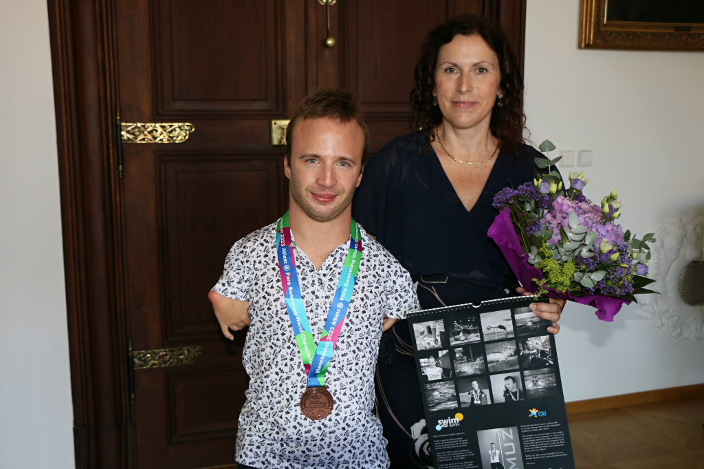 „Arny opět nezklamal a z nedávného Mistrovství světa v Manchesteru, kde závodilo 600 plavců ze 70 zemí světa, přivezl bronzovou medaili. Je to prostě borec a právem mu patří velká gratulace. Vážím si ale i jeho dalších aktivit, třeba spoluorganizování her pro hendikepovanou mládež, kde je ambasadorem a má s tím spoustu práce, “ řekla primátorka Dagmar Škodová Parmová. „Je to tak, právě ladíme disciplíny. Hry budou v únoru 2024 na Lipně a sportovci se utkají ve sjezdovém lyžování, na běžkách i sněžnicích. Uvažujeme i o parahokeji v Budějovicích, “ dodává Arnošt. „Město zmiňované hry V4 Winter Games Emil Open opět samozřejmě podpoří. Chceme z Budějovic udělat město bez bariér, inspirovat znevýhodněné děti, aby si uměly najít vhodné sportovní aktivity a věnovaly se jim s opravdovým nasazením,“ uzavřela primátorka.