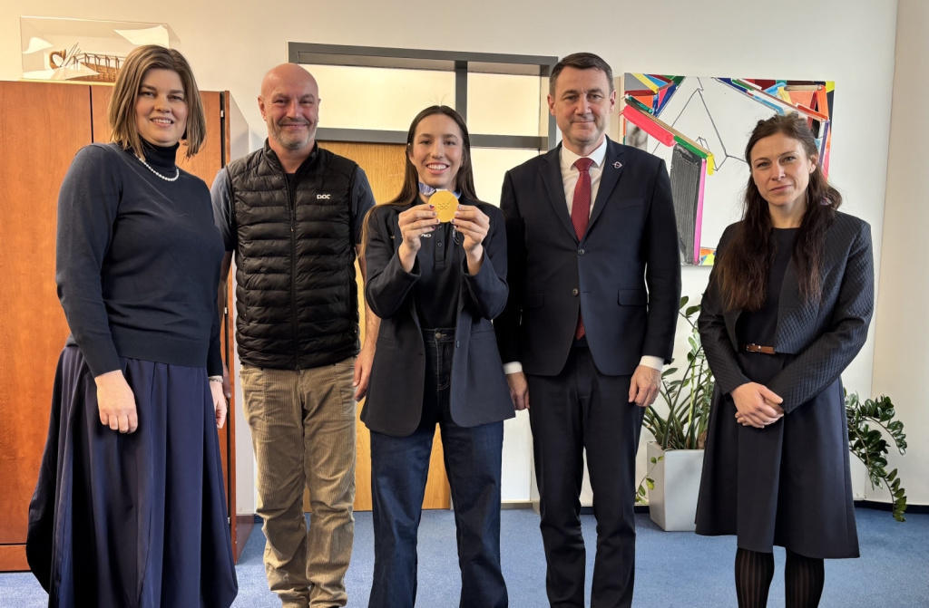 14. února 2026, 07.53 | Zlatá olympijská vítězka ve snowboardingu Zuzana Maděrová obdržela od hejtmana Martina Půty zlatý Dukát hejtmana. K prvnímu místu na letošních zimních olympijských hrách 2026 v paralelním obřím slalomu jí rovněž poděkovala Jitka Skalická, radní pro školství a sport a starostka Oldřichova v Hájích Jan Šťastná, kde olympijská vítězka žije.