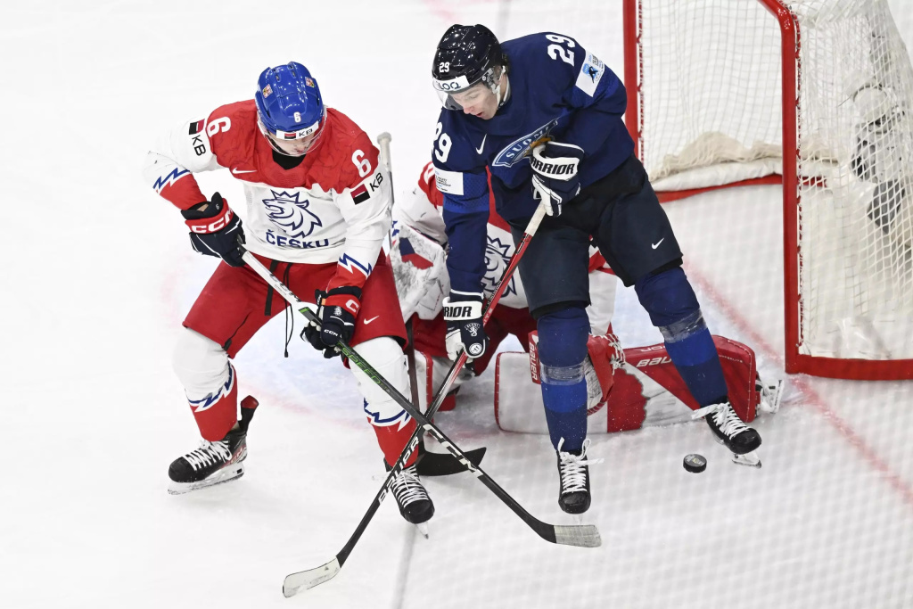 Po nepovedeném startu se Češi chytli v přesilovce. Matyáš Šapovaliv vybojoval kotouč za brankou Finska a přes dva obránce prostrčil zadovkou na Eduarda Šalého, jehož bekhendová klička skončila zakončením těsně vedle zadní tyče. Vyrovnanou hru strhlo Finsko na svou stranu přesnou ranou z mezikruží, Rasmus Kumpulainen využil clony před Hrabalem a trefil volný prostor u pravé tyčky. Přesně o devadesát sekund později přišla druhá rána pro národní tým. Aleksanteri Kaskimäki našel z rohu mezi kruhy volného Janiho Nimana, jenž se štěstím procpal kotouč mezi rukou a tělem zacloněného Hrabala. Po druhé obdržené brance přepustil Michael Hrabal vůbec poprvé na celém šampionátu své místo Jakubu Vondrašovi. Země tisíce jezer pokračovala v útočné kombinaci i nadále a Oiva Keskinen taženou střelou orazítkoval břevno. Češi se však zvedli v přesilové hře. Nejlepší nahrávač Matyáš Melovský vykouzlil milimetrový křižný pas na Jiřího Kulicha, jehož dělovka příklepem zaplula přesně k bližší tyči.