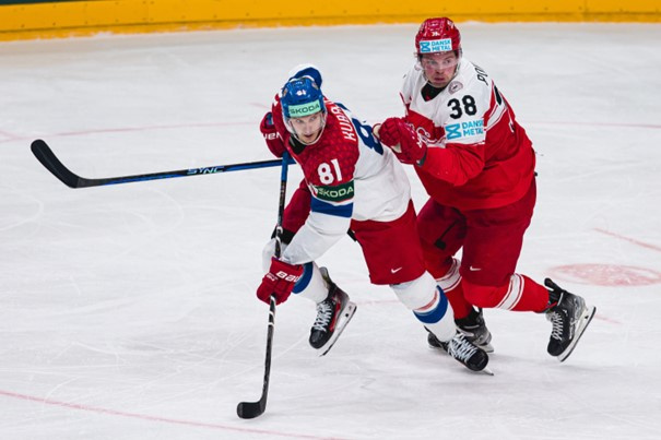 Národní tým si následně začal více hlídat střední pásmo a z rychlých protiútoku začal také více hrozit. Ondřej Palát přiklepl puk do jízdy Davidu Tomáškovi a ten se hnal do úniku dva na nikoho s Dominikem Kubalíkem. Druhý jmenovaný mohl slavit premiérovou branku na letošním MS. Aby toho nebylo málo, tak hned o půl minuty později přidali Češi k radosti publika další trefu. Ze středního pásma opět výborně vybruslili dva čeští hráči. Byl to David Kämpf, který trochu krkolomně, ale přece předal puk Matěji Stránskému, jenž rozvlnil dánskou síťku pošesté v utkání.