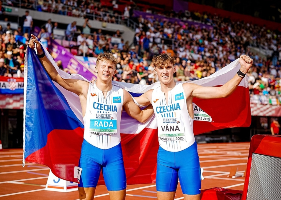 11. srpna 2025, 09.26 | Tampere - Pět medailí získali čeští atleti na juniorském mistrovství Evropy v Tampere během sobotního programu a navázali tak na páteční triumf dálkaře Petra Meindlschmida. Michal Rada vyhrál běh na 400 metrů překážek v rekordu šampionátu 48,78 sekundy. Druhý český reprezentant ve finále Marek Váňa získal bronz v osobním maximu 50,46. Třetí medaili ze sobotního programu přidala Terezie Táborská, která ve finále 200 metrů doběhla s časem 23,49 třetí. Další úspěch české výpravy zaznamenala také bronzová Ema Berková ve steeplu, Ondřej Loupal skončil třetí v běhu na 400 metrů.