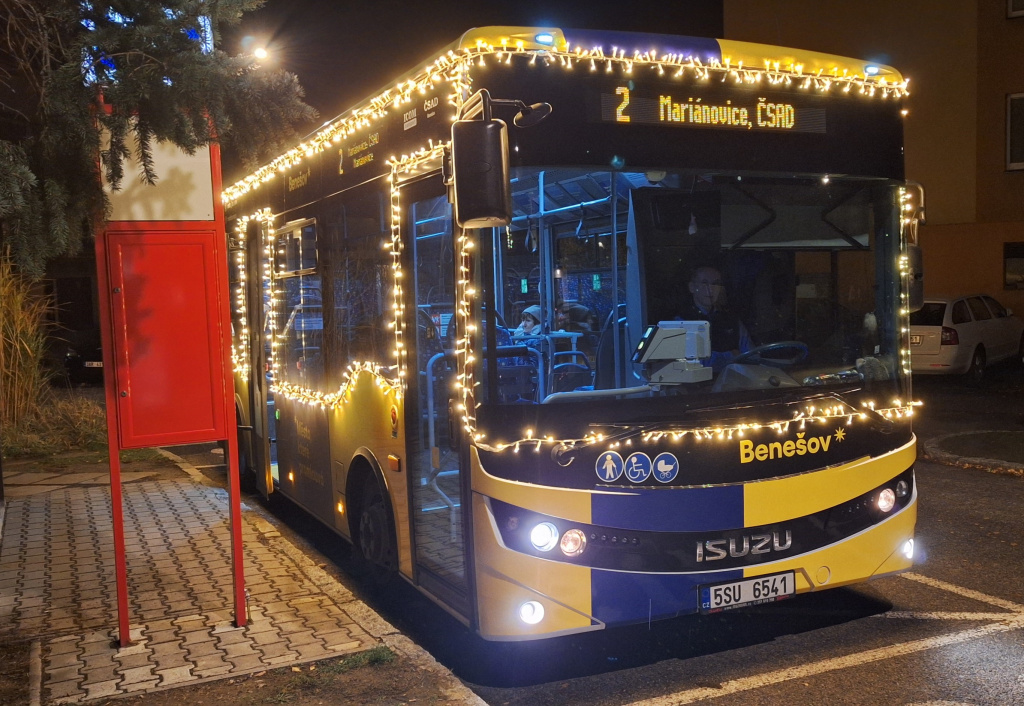 Provoz MHD Benešov zajišťuje celkem pět minibusů ISUZU NovoCiti Life a dva z nich od 20. listopadu brázdí benešovské ulice ve svátečním – jejich exteriér totiž bohatě zdobí světelné řetězy. „Věříme, že městské autobusy letos významně povzbudí místní sváteční atmosféru a zároveň tímto způsobem připomenou, že v benešovské dopravě zaujímají speciální místo. První zkušenosti potvrzují, že především děti jsou z vyzdobených autobusů naprosto nadšené,“ říká místostarosta Benešova Jakub Hostek. Projekt je výsledkem spolupráce Kulturního a informačního centra Benešov a dopravce ČSAD Benešov, jimž patří poděkování za realizaci, stejně jako dispečerům ČSAD, kteří takový projekt zrealizovali poprvé, a v neposlední řadě také řidičům turnusů 3 a 5, jež budou během adventu tyto vánoční autobusy řídit. Díky podpoře města mohou cestující v Benešově využívat MHD zdarma, což přispívá k růstu počtu cestujících i k podpoře udržitelné městské mobility – MHD totiž denně přepraví již 3500 osob. Na začátku letošního roku se jednalo o přibližně 1000 cestujících méně.