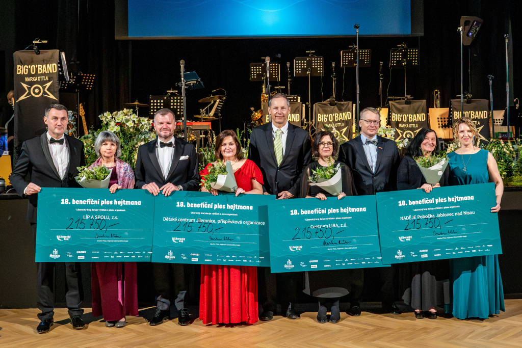 2. března 2026, 05.41 | Liberecký kraj - Celkem 863 000 korun z výtěžku osmnáctého benefičního plesu hejtmana zamířilo na podporu charitativních organizací: Centrum LIRA, z.ú., NADĚJE Pobočka Jablonec nad Nisou, LÍP A SPOLU, z.s. a Dětské centrum Jilemnice, příspěvková organizace. Ples hejtmana se uskutečnil v sobotu 28. února 2026 od 20 hodin v zrekonstruovaných Lidových sadech v Liberci. Pro ty, kteří chtěli přispět, ale plesu se nemohli zúčastnit, byla připravena takzvaná benefiční vstupenka v ceně 1 000 korun, jejíž celá hodnota byla věnována charitativním organizacím.