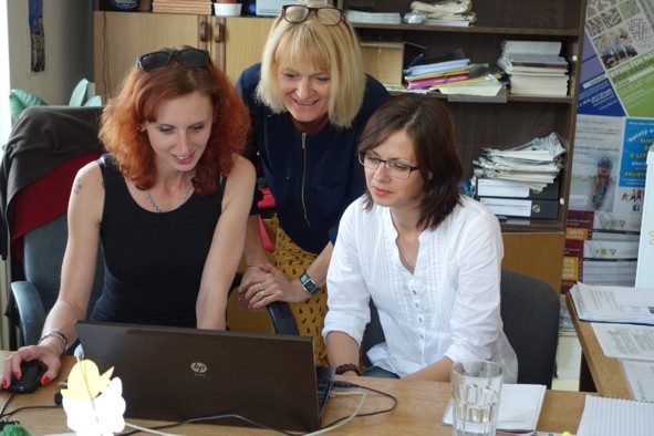 Trnavská koordinátorka Regina Hulmanová (vpravo) spolu s koordinátorkami Zdravého města Litoměřice Ritou Vlčkovou a Terezou Kalinovou, které ji seznámily s činnostmi a postupy Zdravého města Litoměřice, dále se systémem přípravy kampaní, s prací s webovými stránkami a také s Dataplánem. Foto Petr Hermann