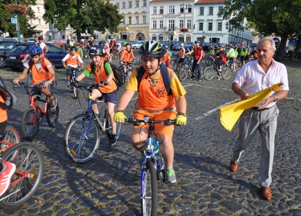 jízdu městem, objely základní školy, kde se k nim přidávali další cyklisté. Jednotlivé školy vítaly školáky na kole bouřlivě, Masarykova škola dokonce s hudbou a velkým kolem ze slámy. Celkem se zapojila stovka účastníků. Bezpečnost cyklistů zajišťovaly hlídky městské policie.