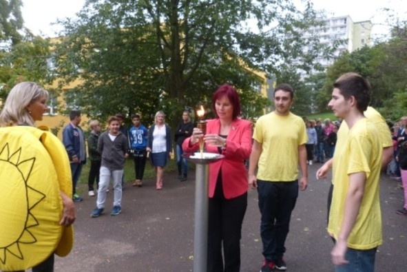 Slavnostní otevření nového školního hřiště umocnilo dojemné vystoupení žáků ze ZŠ speciální a žáky Praktické školy dvouleté pod vedením jejich vyučujících. Nechyběl ani pomyslný olympijský oheň, jehož zapálením Dagmar Waicová slavnostně zahájila provoz nového sportoviště. Oheň symbolizující sportovní klání dokázal důstojně nahradit klasické přestřižení pásky.
