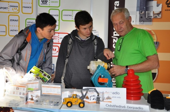 zdroj: Filip Horký a Petr Preiss, deváťáci z Lovosic, si se zájmem vyslechli u stánku firmy Hennlich informace o tepelných čerpadlech, které jim zajímavým způsobem podal zástupce firmy Jan Valníček.