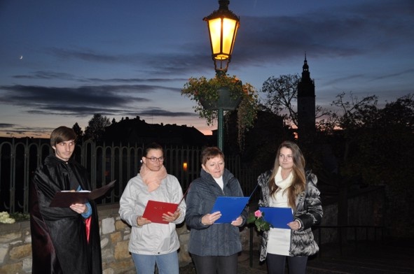 „Mácha se jednoho pozdního zářijového dne roku 1836 vydal pěšky do Litoměřic. Směřoval do domu Na Vikárce, kde měl domluvený podnájem, a u litoměřického advokáta Durase nastupoval jako písař. Plánoval zde prožít svůj život, sem se za ním měla přistěhovat drahá Lori, jen co porodí jejich dítě,“ zahájila literární pásmo přibližující konec Máchova života vedoucí infocentra Hana Mildová. Osud tomu však nechtěl. Je 8. listopadu 1836, tedy den, kdy se měla konat svatba. Místo svatby je však ženich vynášen v rakvi ze svého bytu Na Vikárce, tehdy U Švícka.