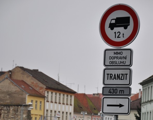 „Značku zákaz vjezdu doplňuje dodatková tabulka čtvercového typu s nápisem TRANZIT, která vešla v platnost v lednu letošního roku,“ informoval vedoucí odboru dopravy a silničního hospodářství městského úřadu Jan Jakub. Zamezuje ve vjezdu do obcí a měst všem šoférům, kteří tam nemíří kvůli naložení nebo vyložení nákladu, kvůli údržbě, opravě nebo pokud tam řidič nebude mít trvalé bydliště.