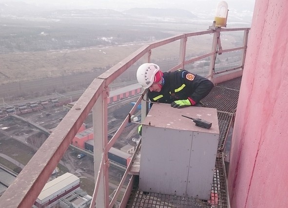 „Prunéřovská budka byla prakticky čistá. Byl v ní jen podkladový keramzit a poměrně čerstvý trus. Rozházené zbytky kostí po ochozech pak nasvědčovaly tomu, že už si zřejmě „někdo“ sám budku vyčistil,“ konstatoval Jan Apolen, hasič strojník z Elektrárny Tušimice, který je zároveň instruktor horolezecké techniky. Jak v Prunéřově, tak i na domácí půdě v Tušimicích ho doprovázel kolega Jan Stϋtz. „Jako dobrovolného člena Horské služby ho baví lezení po výškách. Počítám s tím, že bude jednou můj nástupce. Výstupy na komín a chladicí věž proto absolvujeme v rámci jeho instruktorského výcviku pro hasiče.“