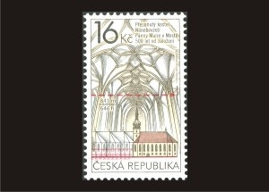 Námětem známky je hvězdicová klenba střední lodi kostela výtvarně zvýrazněná krouženými žebry, vnější obraz celého kostela v dolní části známky a náznaky fázování a kóty s parametry posunu, které vyjadřují jeho přesun v roce 1975.