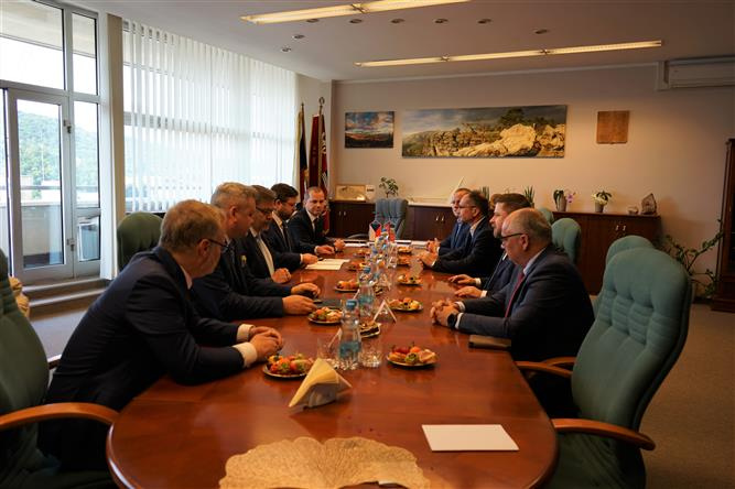 13. června 2023, 14.54 | Krajský úřad Ústeckého kraje. Formální návštěvu inicioval hejtman Jan Schiller. Součástí programu bylo i setkání s krajskými radními a zástupci velkých průmyslových firem působících v regionu. ¨