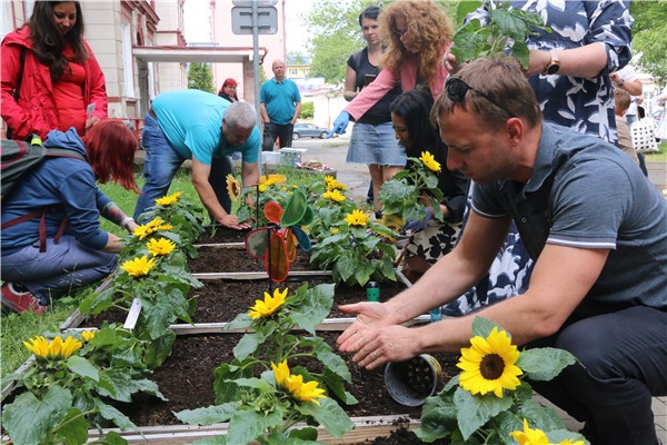 5. června 2025, 06.50 | Teplice - Zasazením čtyř desítek slunečnic v teplické nemocnici se zde připojili v rámci projektu Rozsviťme Českou republiku ke Světovému dni roztroušené sklerózy. Tým zdejšího RS centra, jeho klienti, rodinní příslušníci pacientů, zástupci organizace ROSKA, ale také představitelé města a zástupci organizací se zaměřením na zdravotní a sociální služby, i další příznivci se při této příležitosti sešli před neurologickým oddělením, aby zasadili svou slunečnici jako symbol projektu a napsali vzkaz nemocným roztroušenou sklerózou.
