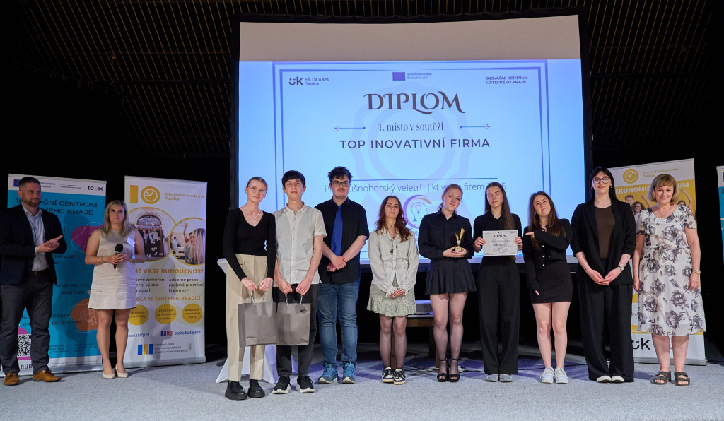 Ve středu, 4. června, se v Teplicích uskutečnil 1. Podkrušnohorský veletrh fiktivních firem, na kterém se zúčastnilo a soutěžilo více než 20 fiktivních firem složených z žáků středních škol z Ústeckého kraje. Cílem veletrhu bylo umožnit žákům představit své projekty a soutěžit v několika kategoriích, jako jsou nejlepší slogan a logo, firemní leták, videospot, stánek, prodejní dovednosti a „elevator pitch“ v anglickém jazyce. Fiktivní firmy se prezentovaly před odbornou porotou, která hodnotila nejen kreativitu, ale i obchodní modely a schopnost prezentace. Výsledek? Mladí podnikaví žáci překvapili svojí připraveností a sebevědomím. “Studenti rozvíjí týmovou spolupráci, obchodní ducha i prezentační dovednosti. Klíčovou roli hraje vlastní iniciativa a zodpovědnost studentů za fungování celé firmy. Tento praktický přístup umožňuje žákům získat cenné zkušenosti a připravit se na reálný pracovní svět,” sdělila Miroslava Přibylová, učitelka z Obchodní akademie a SPŠ Teplice a spoluorganizátorka akce.