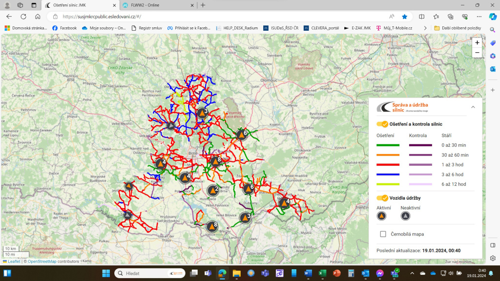 Právě zveřejněná mapa zobrazuje pohyb vozidel, která zajišťují údržbu na silnicích II. a III. třídy mimo území města Brna. „Společnost Brněnské komunikace a.s. má od zimního období 2023/2024 nového dodavatele systému GPS, který se momentálně neshoduje s tím našim, o vzájemném sladění dat budeme ještě jednat,“ uzavřel Hanák.