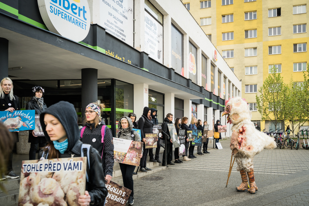 21. dubna 2024, 07.08 | Brno - Před brněnskými pobočkami supermarketu Albert se odehrály tiché protesty. Účastníci tak upozornili na hrozivé podmínky kuřat chovaných právě pro tento obchodní řetězec. Albert čelí bezprecedentní veřejné kampani poté, co byly zveřejněny záběry z farem, z nichž odebírá kuřata pro svou značku "Albertovo čerstvé". Tyto záběry jsou v ostrém kontrastu s jeho reklamami a standardem, který Albert od chovatelů vyžaduje na Západě.