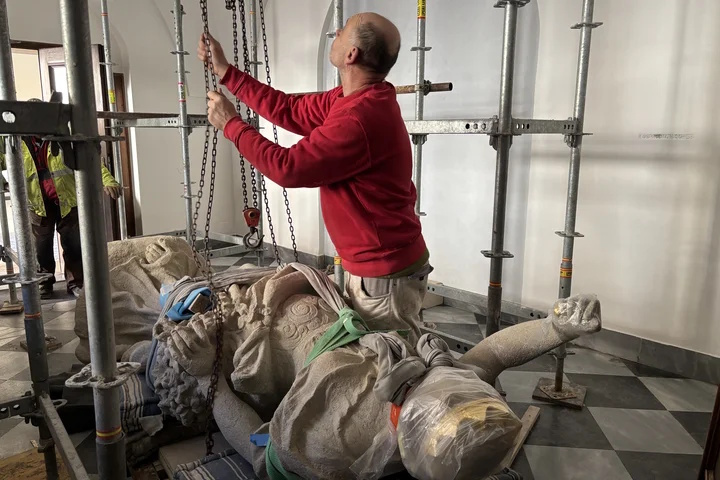 15. května 2025, 05.51 | Brno - Alegorická socha Evropy, jež byla donedávna součástí kašny Parnas na Zelném trhu, našla nový domov. Technický stav sochy již neumožňoval další umístění ve venkovním prostředí. Po důkladné obnově si ji nyní mohou lidé prohlédnout zblízka na radnici městské části Brno-střed.
