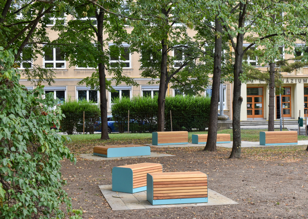 Park před gymnáziem láká po proměně k odpočinku