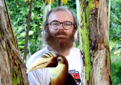 Na snímku vedoucí projektu Vojtěch Novotný s maskotem týmu, zoborožcem Kokomem. Zdroj: Archiv BC AV ČR