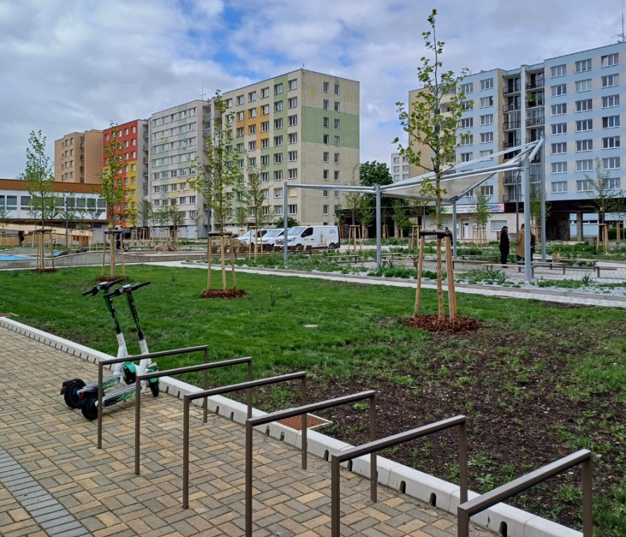 Celkové náklady výstavby byly 22 milionů Kč, město obdrželo dotaci 16,5 mil. Kč z norských fondů. „Rád bych poděkoval nejen všem, kteří se do výstavby zapojili, ale i lidem z okolních domů za trpělivost, protože takováto stavba přináší nepohodlí. Mám dobrý pocit z toho, že spousta lidí chválí, jak se tohle místo proměnilo, občané tady konečně mají prostor, kde mohou příjemně trávit volný čas,“ shrnul přínosy rekonstrukce první náměstek primátorky Petr Maroš, který je zodpovědný za investice. Součástí proměny je i atraktivní stínící plachta, kterou místní ocení v horkých letních dnech. „Projekt je výjimečný i z hlediska životního prostředí. Bylo tu vysazeno 51 stromů, které nahradily původní, jež tu skomíraly. Záměrně jsme volili takové druhy, které se do prostředí budou hodit – ambroně, platany a neplodící třešně. Rozsáhlá zeleň nejen ochladí tuto část sídliště, ale zadrží i velké množství dešťové vody a bude domovem zpěvnému ptactvu,“ vysvětlila náměstkyně primátorky pro životní prostředí Zuzana Kudláčková.