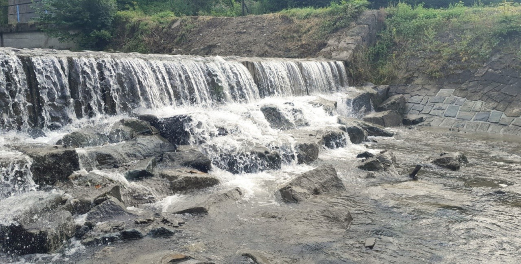První stupeň nad mostem zpevnily těžké kameny. Chrání mostní konstrukci a stabilizují koryto toku. Druhý stupeň nahradil balvanitý skluz s dnovými pasy a tůněmi pro vodní živočichy. Třetí stupeň v létě využívají lidé ke koupání. Na něm vodohospodáři opravili přelivnou hranu. Nově ji chrání kameny umístěné také níže v korytě toku.