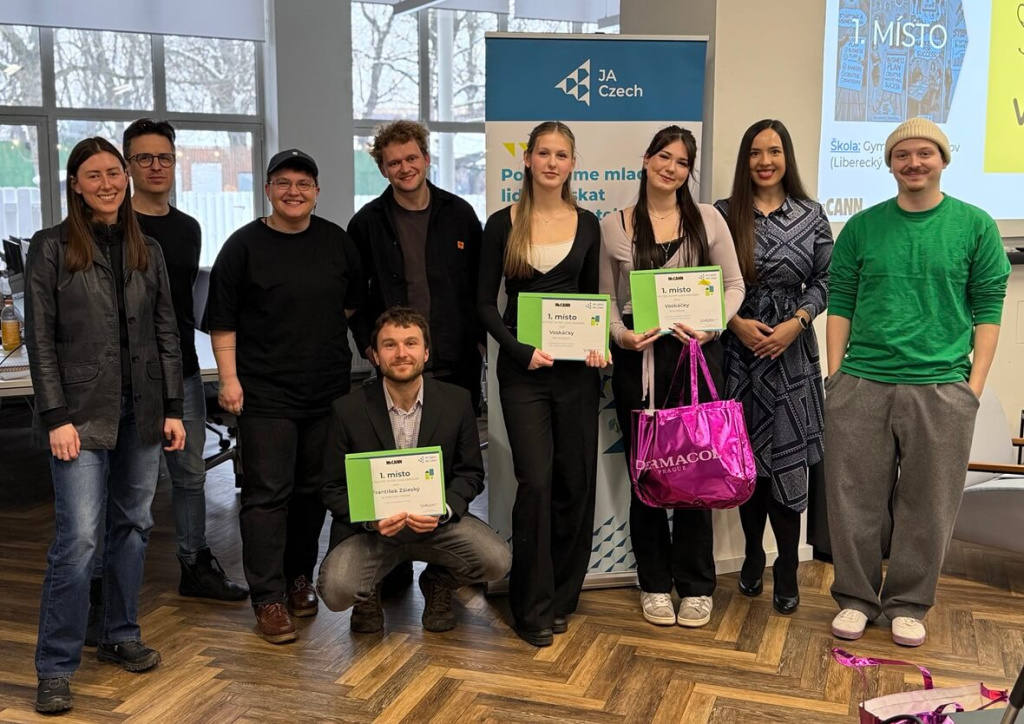 7. února 2026, 08.38 | Praha – Studenti středních škol, kteří díky programu JA Studentská firma reálně podnikají, se utkali v soutěži JA Top Logo o nejlepší vizuální identitu studentské firmy. Absolutní prvenství za své logo a promo video získali studenti z Gymnázia Jana Palacha v Turnově. Jejich firma Voskáčky vyrábí bavlněné ubrousky ze včelího vosku od soukromého včelaře.