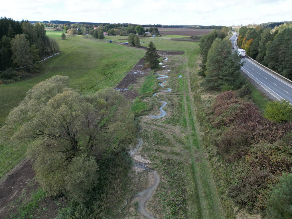 Technicky upravené, přímé a výrazně zahloubené koryto potoka protékající odvodněnými loukami se v loňském roce proměnilo k nepoznání. Revitalizovaný úsek měří dva kilometry. Je v něm taky devět tůní. Přírodní ráz místa dotváří i nově vysazené stromy s keři na březích. „Původní koryto jsme nechali zasypat výkopovou zeminou. Zachovalo se jen v místech s cenným původním břehovým porostem. Tam je teď osm nových prahů a do toku jsme zakomponovali i mrtvé dřevo. Slouží jako úkryt živočichů, ale taky zpomaluje proudění vody,“ říká Zbyněk Morkus, vedoucí Správy toků pro oblast povodí Labe z Lesů České republiky. Pozitiva projektu se projevila už během stavby, a zejména po jejím dokončení. „V místě se výrazně zvýšil počet obojživelníků, například skokana hnědého, stejně jako plazů a ptáků. Častěji nebo nově se tam objevují i zvláště chráněné druhy, mezi nimi skokan zelený, užovka obojková, čolek obecný nebo čáp černý,“ dodává Morkus. Revitalizaci území nedaleko budované dálnice D35 spolufinancovala Evropská unie z Národního programu – Životní prostředí. Celkové náklady projektu činí 2 967 000 Kč.