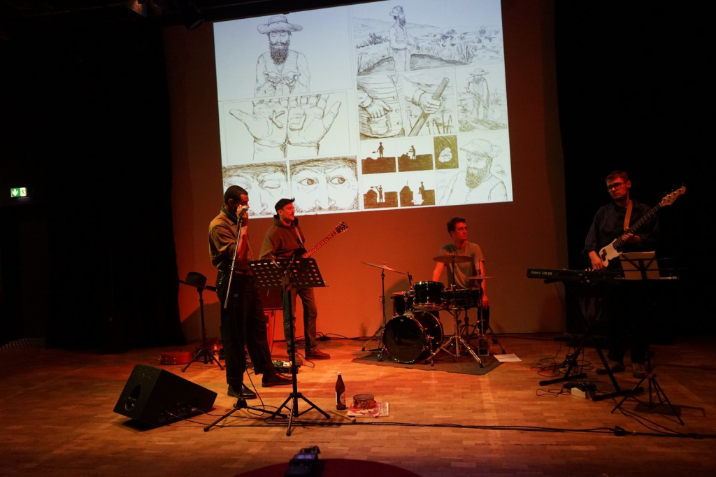 Po představení se večerní program přesune do divadelního klubu, kde divákům zahraje pražská kapela Rotten Hands. Umělci pohybující se v divadelním prostředí společně vytváří autorskou hudbu ve stylu, který navazuje na estetiku filmové westernové hudby s přesahem do post rocku či post punku. Kapela vznikla na popud rozkresleného westernového komiksu, jehož fiktivní postavy se nenápadně podobají samotným členům kapely. A právě projekce komiksu bude také součástí koncertu.
