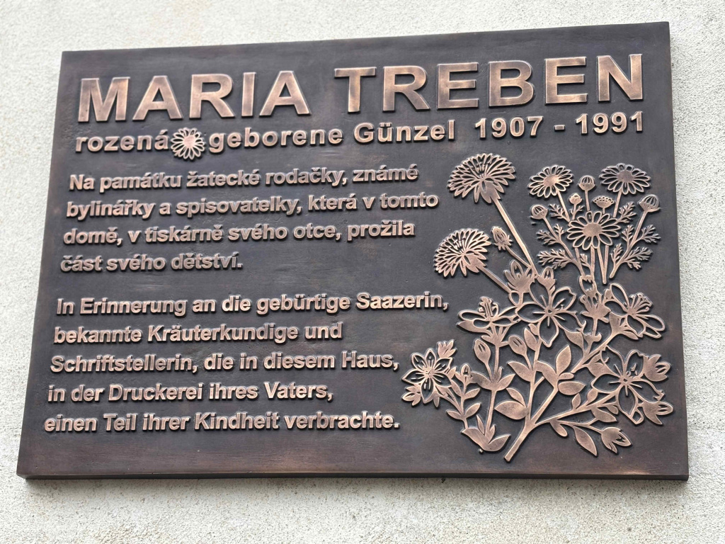 25. dubna 2026, 07.09 | Žatec – Pamětní desku významné, ale v Česku prakticky až po listopadu ´89 připomínané, rodačky Marie Treben odhalili v sobotu 18. dubna členové Žateckého okrašlovacího kolektivu v ulici U Odborů na domě čp. 251. Stalo se tak se svolením manželů Petříčkových, jimž objekt patří. I když rodný dům světově uznávané bylinkářky a spisovatelky na téma „Zdraví z boží lékárny“ dodnes stojí v Žatci na jiném místě, v tomto provozoval její otec tiskárnu a ona v něm prožila podstatnou část dětství. Pamětní desku společně odhalili předseda spolku Vladimír Vlach a majitel domu Tomáš Petříček, následně jí požehnal žatecký děkan P. Augustin Josef Špaček. Na realizaci projektu přispěla Žateckému okrašlovacímu kolektivu Nadace ČEZ částkou 100 000 korun, a to prostřednictvím aplikace EPP – Pomáhej pohybem.