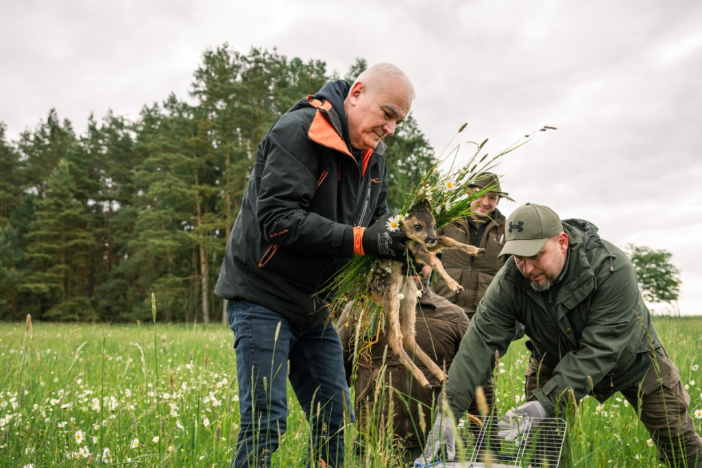 Právě přirozený obranný mechanismus zvěře, kdy se při ohrožení přikrčí a zůstávají nehybná, se jí v kontaktu s moderní zemědělskou technikou stává osudným. Každoročně tak podle odhadů zahyne při sečení více než 60 tisíc srnčat a dalších zvířat, často i chráněných druhů. Členové spolku proto společně s dobrovolníky vyrážejí do terénu v den sečení už ve velmi brzkých ranních hodinách, zpravidla ještě před pátou hodinou. „Pomocí dronů s termokamerou prohledávají plochy určené k sečení a vyhledávají mláďata ukrytá v porostu. Bez této techniky je přitom šance je v husté trávě objevit velmi nízká,“ upozorňuje hejtman Kamal Farhan. Jakmile operátor dronu srnče nebo jiné zvíře lokalizuje, dobrovolníci ho opatrně odchytí, umístí do přepravního boxu a přenesou na bezpečné místo. Tam v klidu, chládku a mimo hluk techniky přečká samotné sečení. Poté je zvíře vráceno zpět na místo nálezu, kde si ho matka obvykle sama vyhledá a odvede. Celý postup má jasná pravidla a dobrovolníci jsou na manipulaci s mláďaty pečlivě proškoleni.