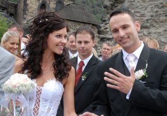 21. července 2008, 09.11 | Ústí na Labem | V romantickém prostředí středověkého hradu Střekov vyslovila v sobotu 19. července své „ANO“ sympatickému policistovi Tomáši Kocmanovi z Duchcova majitelka pěti titulů Miss - Lenka Taussigová z ústeckých Neštěmic. Očekávaná svatba známé modelky vzbudila větší zájem veřejnosti než bývá na Střekově zvykem, proto předsvatební nervozitu hostů i organizátorů svatby ještě zvýšilo zpoždění nevěsty, jejíž maminka po svatebním obřadu prozradila, že auto nevěsty mělo poruchu. Ani tato nepříjemnost však nedokázala vyvést z míry kastelána hradu Jiřího Himla, který scénář svatby koordinoval, proto nakonec všechno dobře dopadlo. Průběh celé akce symbolicky doplňoval lehounký děštík, předznamenávající štěstí budoucích manželů, a také hudební doprovod saxkvartetu Quaruncle, v jejichž podání zněl známý svatební pochod Mendelssona- Bartholdyho obvzvlášť dojemně.