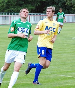 30. června 2008, 09.21 | Modrá | Fotbalisté Teplic zvládli výborně také své třetí přípravné utkání, když porazili Jablonec. Na závěr kondičního soustředění v Modré na Děčínsku porazili v sobotu mužstvo Jablonce 1:0. Jedinou branku zápasu vstřelil v samotném závěru utkání slovenský útočník Andrej Hesek, který se prosadil po pěkné individuální akci. Utkání nedohrál Aidin Mahmutovič, který se zranil. Naopak obnovenou premiéru ve žlutomodrém dresu prožila největší letní posila Štěpán Vachoušek, který dostal od Austrie Vídeň povolení k tréninkům i zápasům za tým Teplic. Na hřišti strávil 60 minut a pak jej vystřídal Gašparík.