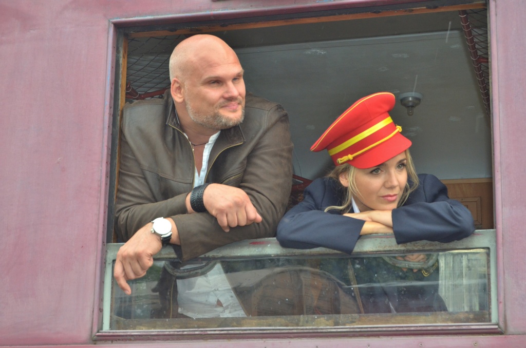 Lucie Vondráčková jako výpravčí a průvodčí zároveň a velmi jí to slušelo |