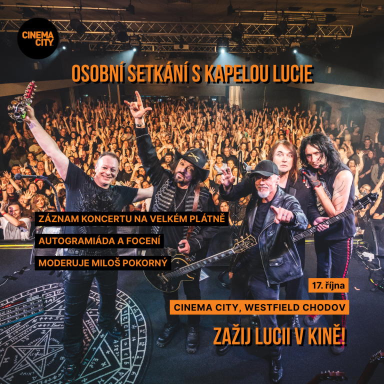 Čtyřicet let na scéně, tisíce fanoušků a stále nová energie. Kapela LUCIE připravila pro své příznivce výjimečný večer plný hudby, emocí i exkluzivních informací. V pátek 17. října 2025 se v Cinema City ve Westfield Chodov uskuteční slavnostní premiéra filmového záznamu koncertu z OX Club Prague, který proběhl 9. dubna letošního roku. Na plátně se kromě koncertu objeví také videoklipy k aktuálním singlům Marie a Krása a zázrak a tajemství. Návštěvníky večerem provede moderátor Miloš Pokorný, který společně s kapelou nabídne pohled do zákulisí její současné tvorby, plánů na rok 2025 i chystaného turné LUCIE 40 let. Kapela také představí připravované album R.A.D.O.S.T. Součástí večera bude i otevřený prostor pro dotazy fanoušků a na závěr nezapomenutelný moment, a to osobní setkání a focení s členy kapely.
