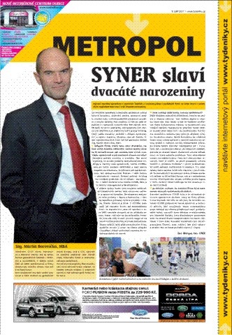 2. září 2011, 19.53 | SYNER slaví dvacáté narozeniny. Největší stavební společnost v severních Čechách a současně jedna z posledních fi rem ve svém oboru s tuzemským kapitálem letos slaví svěží dvacáté narozeniny. Univerzálně zaměřená inženýrská společnost nabízí bytové komplexy, obchodní centra, sportovní areály, výrobní haly, vodohospodářské a dopravní projekty