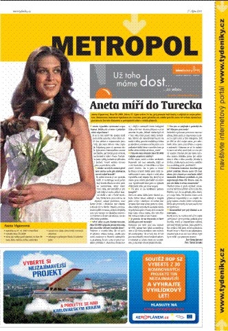 Aneta Vignerová míří do Turecka. Aneta Vignerová, Miss ČR 2009, která 27. října oslaví 24 let, prý pomalu balí kufry a odjíždí za svým přítelem, fotbalistou Tomášem Ujfalušim do Turecka. Ještě předtím ale stihla pokřtít nové CD svému bývalému partnerovi Davidu Krausovi a povyprávět nám o svých plánech.