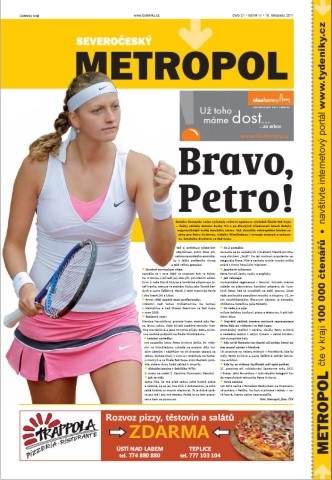Bravo, Petro! Šestého listopadu večer vyťukaly světové agentury výsledek finále Fed Cupu – Češky zdolaly domácí Rusky 3:2 a po dlouhých třiadvaceti letech dobyly nejprestižnější trofej ženského tenisu. Tak skončila veleúspěšná letošní sezóna pro Petru Kvitovou, vítězku Wimbledonu i turnaje mistryň a tahounku ženského družstva ve Fed Cupu.