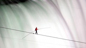 Americký provazochodec zdolal Niagarské vodopády