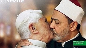 - VATIKÁN | Vatikán ve čtvrtek oznámil, že použije zákonné prostředky proti šíření reklamy italské firmy Benetton, na níž se papež Benedikt XVI. líbá s vlivným egyptským imámem. Informují o tom agentura AFP. Papežský stolec uvedl, že požádal své právníky v Itálii i ve světě, aby "použili vhodné právní prostředky" a zabránili dalšímu šíření fotomontáže.